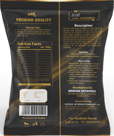 Our Cinnamon (Dalchini) is a premium-quality spice known for its sweet, warm, and aromatic flavor. It is sourced from the finest farms, offering a ric....