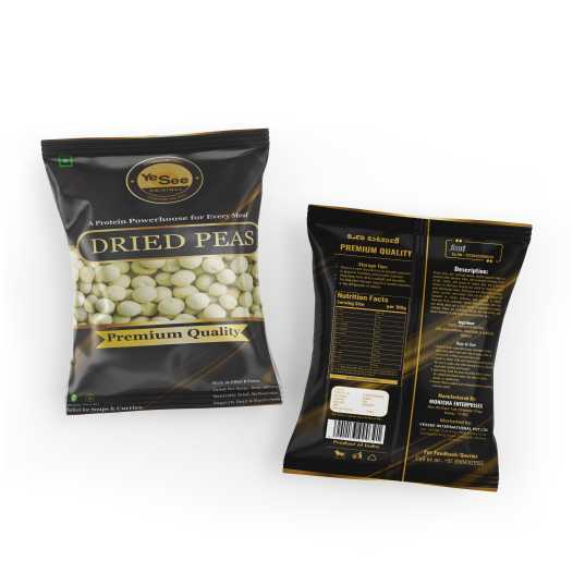 Our Dried Peas are naturally sun-dried and packed with essential nutrients, making them an excellent source of protein, fiber, and vitamins. These small, round legumes are perfect for hearty soups, stews, curries, or even as a protein-packed addition to salads and snacks. Dried peas can be used in both savoury and sweet dishes, and are known for their ability to absorb flavors from the spices and seasonings they’re cooked with. Dried peas are an excellent plant-based protein source, making them an ideal option for vegetarians and vegans. They are also rich in iron, potassium, and folate, supporting heart health and digestion. Key Features: Rich in Protein and Fiber: Great for adding nutrition to your meals, especially for plant-based diets. Versatile Usage: Perfect for making pea soup, dal, curries, and salads. Natural & Unprocessed: 100% natural dried peas with no added preservatives or artificial colours.