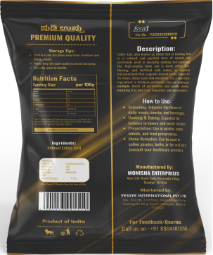 Table Salt is a staple kitchen essential, used daily in cooking and food preparation. Our high-purity iodized table salt is refined and free-flowing, ....