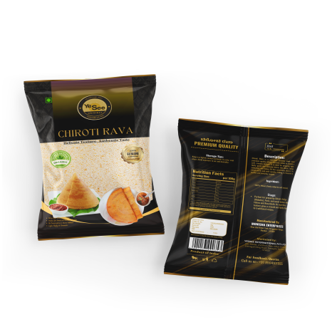 Chiroti Rava, also known as fine semolina or superfine sooji, is a finely milled wheat product used to prepare delicate and crispy Indian sweets and snacks. Known for its smooth texture and light consistency, Chiroti Rava is perfect for making traditional dishes like Chiroti, Kesari Bath, Halwa, and layered pastries. It absorbs flavors beautifully and results in a soft, melt-in-your-mouth finish—ideal for festive cooking and everyday indulgence.