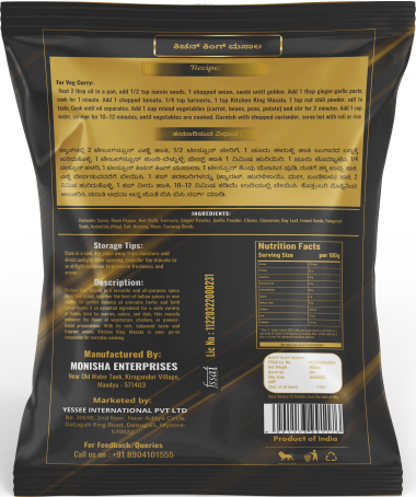 A versatile and aromatic spice blend that’s a must-have in every Indian kitchen! Kitchen King Masala combines a carefully balanced mix of premium spices like coriander, cumin, turmeric, cloves, cinnamon, and cardamom to enhance the flavor of vegetables, dals, gravies, and snacks. This all-purpose masala brings rich aroma and authentic taste, making everyday cooking flavorful and effortless.